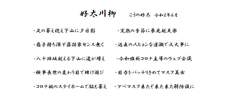 ・解除ごと手ぐすねコロナリバウンド ・お互いを忘れぬ様にウェブ会議