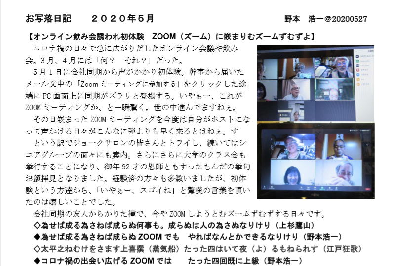 昨年10月にサロン同人柴本金鳥が披露した「破滅の石破」に唸ったことがあった。白田さんに「さすがに、歯科だと『歯滅の刃』は使えませんよね」と披露したら、「さすがにそうですね、ハッハッハ」と笑って貰った。
