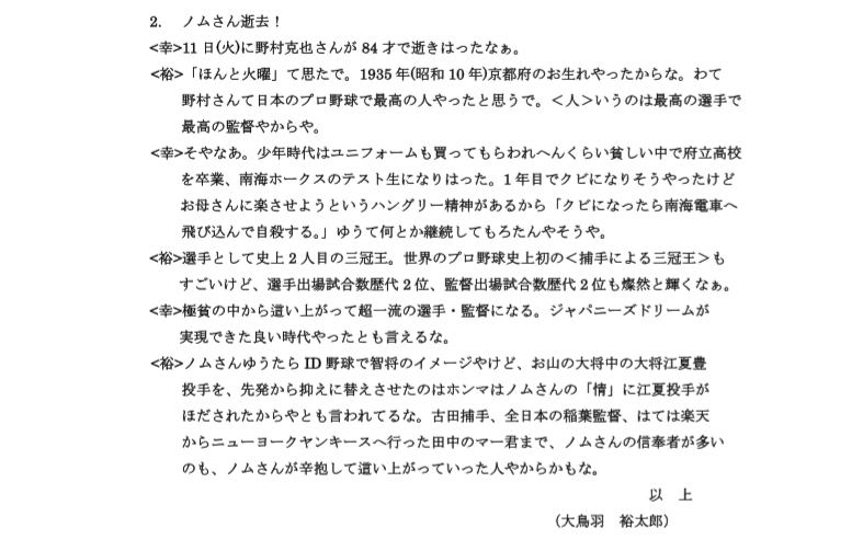 (裕) 毎月下旬やから、なかなか上出来の笑品がでけへんのや。「いいジョークができた、